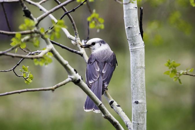 As we passed through a broad valley, my father announced that he would pull over up ahead. We got out of the truck by the side of the road and stood in the snow. My father held out his arm and made a kissing sound with his mouth, telling me to watch the line of trees at the edge of a clearing. As I looked and wondered what was happening, a gray and black blur flew out of the dark spruce forest, calling out a similar sound to the lip squeaks my pa was making. With a flourish of feathers and flaps, a darling and wonderfully clever wecasejac, or Canada gray jay, landed on pa’s outstretched hand and looked at us with keen interest. I was delighted, astonished and curious as my pa pulled a few crumbs of food from his pocket and fed the jay, who joyfully gobbled down the morsels while standing comfortably on my father’s hand. The bird was not at all bothered by the two humans staring at him and talking in soft voices, trying to engage the wecasejac. After a time, the bird hopped off, bounced around for a bit on the ground, inspected the truck, came back to pa, looked at me and then flew off into the cold dimming winter day. I have since had many encounters with those lovely, cheeky birds, as I am sure many other outdoor enthusiasts have. They have been nicknamed — rather ungraciously — “camp robbers” as they often seek food at campsites.