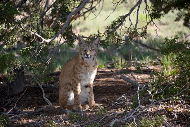 As I open my garden gate on an uncharacteristically sultry Southwest summer afternoon, I hear a growl, a thump and then scrabbling in the Russian olive tree above me. I round the corner and come face to face with a very annoyed looking bobcat mom. She growls once more, looking up at the branches to where her two kittens are peering down curiously.