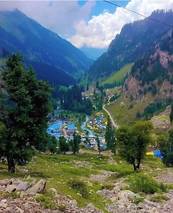 The path to Amarnath Cave, a sacred Hindu pilgrimage site.