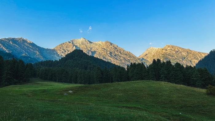 The Baisaran Valley, famous for its lush green meadows and pine forests.