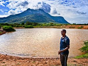 Simon has been studying the farmers’ struggles to prevent crop damage from elephants in Kisigau, Kenya, for several years. It's not so much the crops that the elephants are after, he explains, but the search for water that brings the elephants to human settlements, like here at Kisigau. By the middle of the dry season each year, water sources near Tsavo become scarce. Residents of Kisigau, for example, depend on water trucked in by the government. Each family gets one hundred liters per week, not enough to fill a bathtub. In addition, there are some small ponds of water left from the rainy season that are used to wash clothes and water livestock. One herd of thirsty elephants can drain such a pond in a single evening.