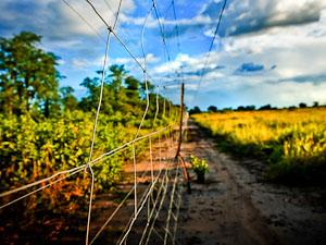 Farmers try all kinds of things to prevent elephant damage. Sheets of metal siding dangle from trees in the wind. Simon says that at best, the elephants ignore them, and at worst, they serve as markers for where the good stuff can be found. Sometimes there are fences of thorns and other barriers that elephants tend to disregard. I almost run face-first into a single strand of barbed wire erected at about eye-level. "A backscratcher for elephants?" I ask Simon.