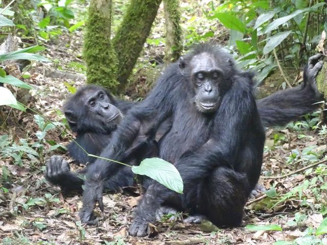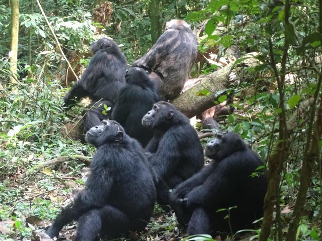 Secondly, researchers can function as a shield. The Budongo chimpanzees seem to recognize that the researchers neither hurt nor help— and that neighboring communities don’t know that. I was moving with the chimps one day when they entered a neighboring community’s territory. They were eyeing the other community’s Cynometra seeds since they had eaten all their own. The Budongo chimps were moving slowly so the researchers could keep up. When the other community came rushing out to defend their territory from the invaders, they took one look at us, turned tail and ran. I know I’m anthropomorphizing, but I could swear I heard the Budongo chimps laughing.