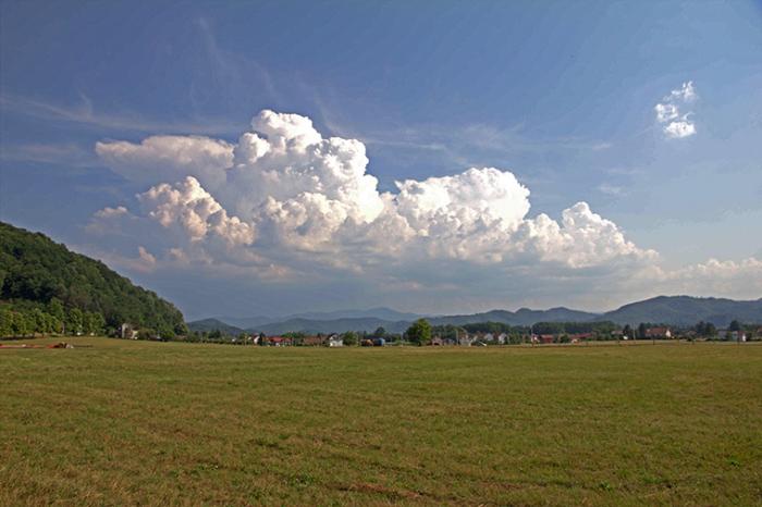 Las nubes ruedan por el valle, rodeando el minarete de la aldea.