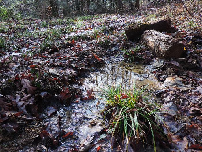 But those new populations come with a tradeoff, namely that they are overlapping with habitats given a special classification in regulations designed to protect wetlands from disturbance. As Virginia's water protection law states, the smallest wetlands disconnected from nearby streams are placed into their own category, which exempt them from protections granted to other wetland habitats. And for the mountain chorus frog, that distinction is critical. Out of the 30 or so new populations that we've discovered so far, most exist in wetlands that could be filled, drained or excavated with little legal consequence. In fact, one of the sites playing home to a newly discovered population of the species has already been filled with gravel to create an off-road vehicle trail, while another has been ditched to enhance drainage.