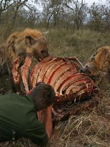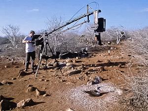 Photos are copyright protected and are used by permission of Chris Palmer. Photographs may not be reproduced without his permission. Copyright information for the photos is as follows: (1) Bob Poole filming cheetahs, photo courtesy of Bob Poole, (2) Kim Wolhuter filming hyena, photo © Barend Van Der Watt, (3) Joseph Pontecorvo filming blue-footed booby, photo by Alison Balance © NHNZ, (4) Brady Barr filming king cobra, photo © Brady Barr, and (5) Doug Allan filming humpbacks, photo © Sue Flood.