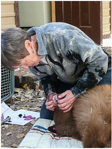 Ramsay wakes up every morning at 4:30 a.m., travels to the holding area and spends the next four hours cleaning out the bears’ pens before heading off to a full day at her regular veterinary practice. She has performed long surgeries on injured animals such as the star bear, been scratched and threatened by the frightened tenants of her holding pens, nursed malnourished animals back to fattened health, treated burns and bites and wounds, fallen out of a tree and burst her spine trying to reach for a bobcat, and is on call 24/7 to help with wild animals all over New Mexico. She is not paid for any of this work.