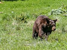 Most of the bears brought to Ramsay were orphaned cubs, but there were a few older animals. Despite looking appealingly cute, Ramsay warned that even a 15-pound cub “could tear your face off” if cornered. They were all black bears (Ursus americanus), ranging in color from cinnamon to dark chocolate. In the crowded pens, some of the cubs played or sprawled in the sun. Others hid or pawed at the wire frames to try to break free. A one-year-old male paced in his pen, letting us know his discomfort, wailing like an unhappy wind. Our small group had been invited to attend the darting, transport and release of five of these rehabilitated bears to a new location. This was the only time Ramsay permitted people to visit; in fact, she preferred a mob. Our job was to help scare the animals and make sure they associated people with being terrified.